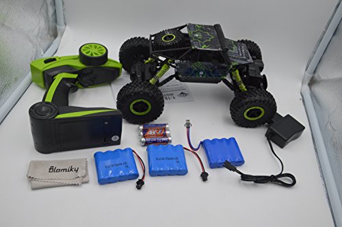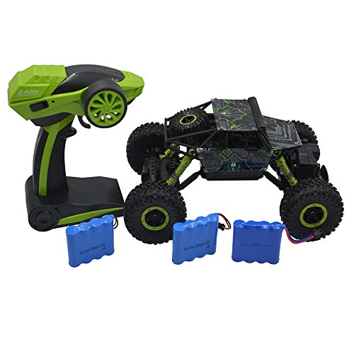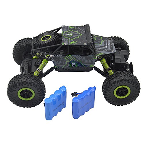 Feature: ? Product Name: Hugine 2.4Ghz RC Rock Crawler 4 WD Monster Truck Off-Road Vehicle Toy Blue ? Product size: 26.5 x 16.5 x 12.5cm ? Material: Plastic Materials, Metal, Rubber, Electronic Components ? Freqency: 2.4GHZ ? Control Range: 0.5m-100m ? Color: Green ? Function: Go Forward, Reverse, Left, Right; The Car can Go Across Sand, Small Rock and other Rugged Land Package: 1* Transmitter(1.5V*3 Battery Not Include) 1* Rechargeable Battery Extra 2 battery gift 1* Charger 1* User Manual 1* Vehicle 1* Blomiky Wipe 0