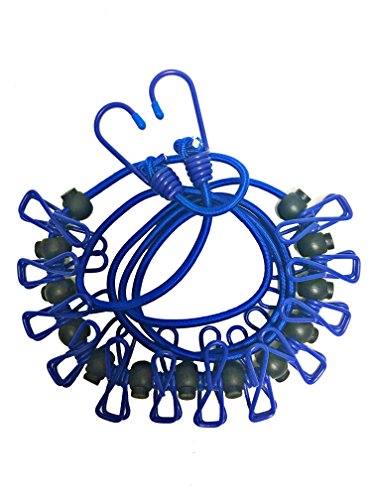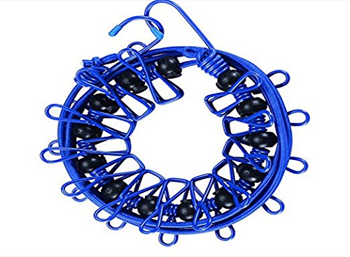Windproof Portable Multi-purpose Camping Laundry Line Travel Elastic Clothesline Adjustable Clothesline with 12pcs Clothespins for Outdoor and Indoor Use (Dark Blue)