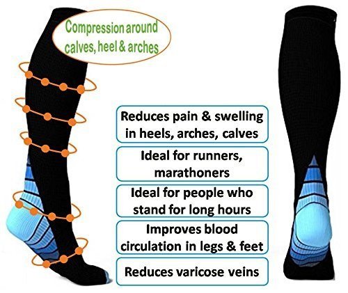 MASSAGES & ENERGIZES YOUR LEGS NATURALLY - These pair of socks use graduated compression,more towards the ankle region of your foot & gradually decreases the pain thereby naturally massaging & energizing your feet for better blood circulation.