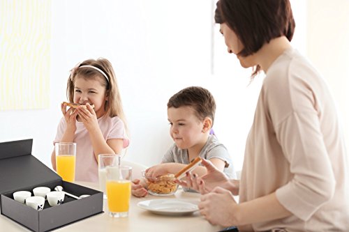 - OUR SET INCLUDES 4 CUPS, 4 SPOONS AND 1 TOPPER ALL PACKED IN A BEAUTIFUL REUSABLE BOX – Finally an elegant set that is perfect for your daily soft-boiled eggs breakfast! – Are you always worrying how to store your egg holder after use? There you go, now you don’t need to worry anymore!!
