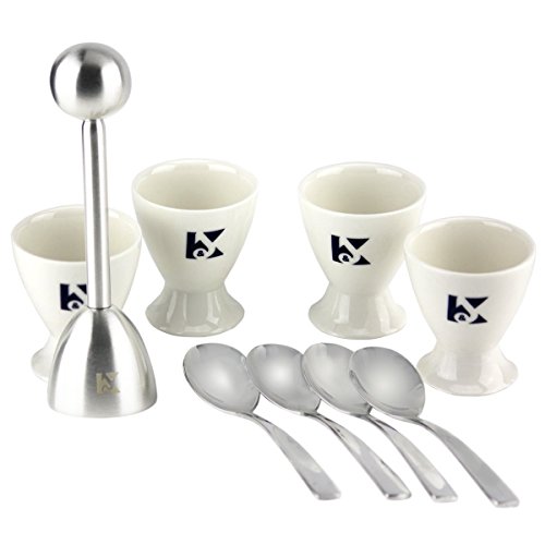 - ENJOY YOUR BEAUTIFUL EGG CUP HOLDER SET BY K&J’S, THE PERFECT GIFT FOR YOUR LOVED ONES – Kail and Jamins are once again with a new quality product, A beautiful set of 4 Ceramic Egg cup holders, 4 Stainless Steel Spoons and 1 Egg shell remover