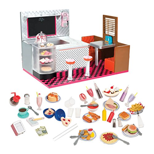 OUR GENERATION BITE TO EAT RETRO DINER WITH 89 ACCESSORIES FOR 18-INCH DOLLS