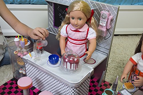 • ALWAYS A CLASSIC RETRO DINER - Meet the gals after school or run it yourself, the Our Generation Bite To Eat Retro Diner is always in fashion, just like your 18" doll. A great gift and sure to be the coolest addition to your dollhouse, this retro diner has everything you need for hours of fun!