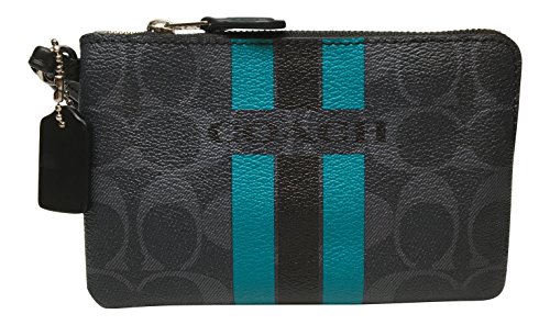 -. Title : Coach Varsity Stripe Small Wristlet Corner Zip Denim Black F66052