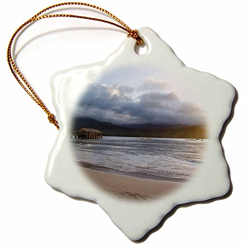 3dRose orn_89825_1 Kauai, Hawaii, Beach at Hanalei Bay - US12 MWR0014 - Micah Wright - Snowflake Ornament, Porcelain, 3-Inch