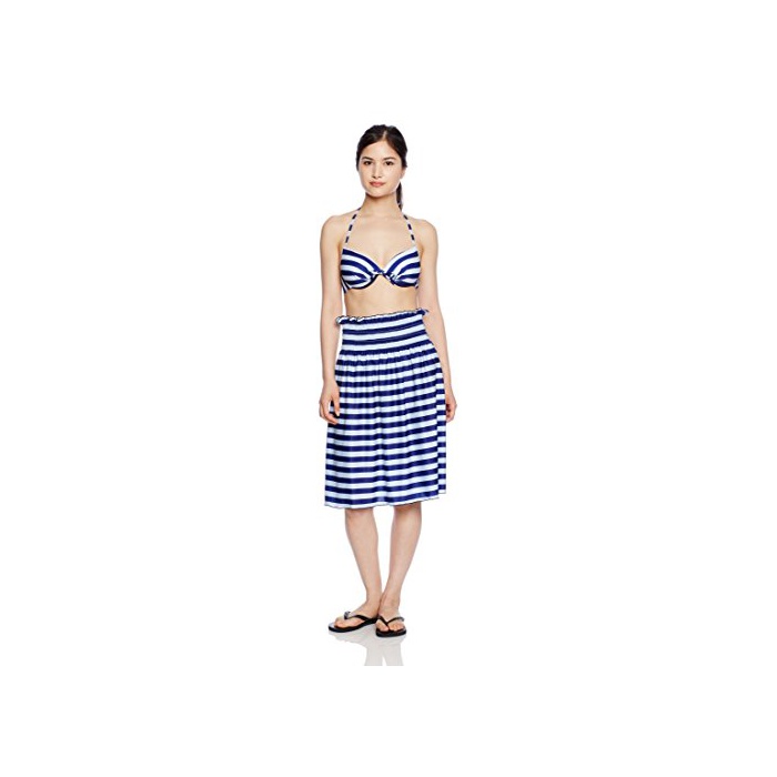 방수《스마호케스》+슈슈 부착!인기의 마린 보더가 외모 귀여운 비키니 수영복3점 세트.체형이 신경이 쓰이는 사람에게도 안심 셔링 타입의 베어(베이스 업) 원피 부착.