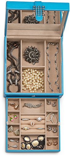 -. Title : Jewelry Box Organizer - 17 Slot Classic Holder with Mirror, 2 Trays for Women, Girls & Teens - PU Leather