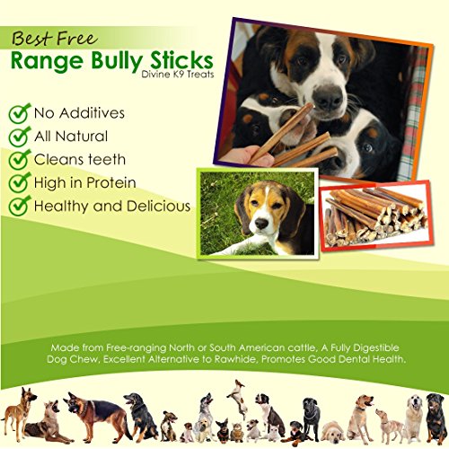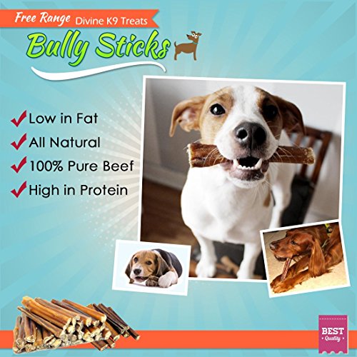 DIVINE K9 BULLY STICKS FOR DOGS OF ALL SIZES 6 INCH HAND-INSPECTED USDA/FDA APPROVED FREE RANGE BEST BEEF BULLY PIZZLE 100% NATURAL DOG TREATS