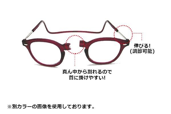 | 首から下げられるスタイリッシュな老眼鏡。 |