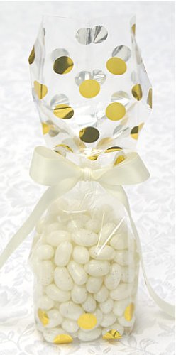 Binding : Health and Beauty Product Description Our tall cellophane favor bags / goodie bags that have GOLD metallic polka dot bands are a wonderful way to display your party favors at each place setting, in gift baskets or on decorative platters for your guests to pick and choose their favorite candy or color.