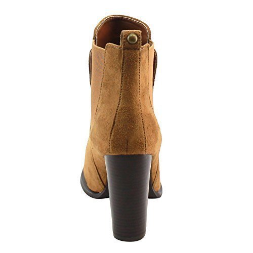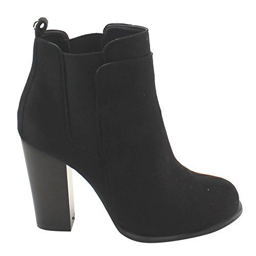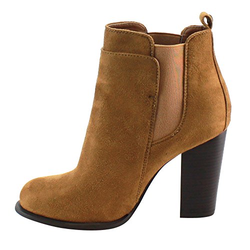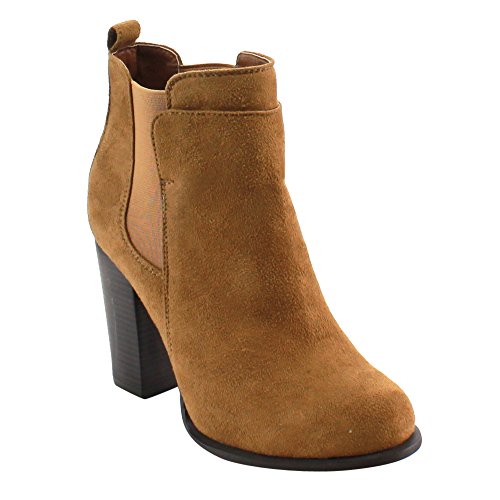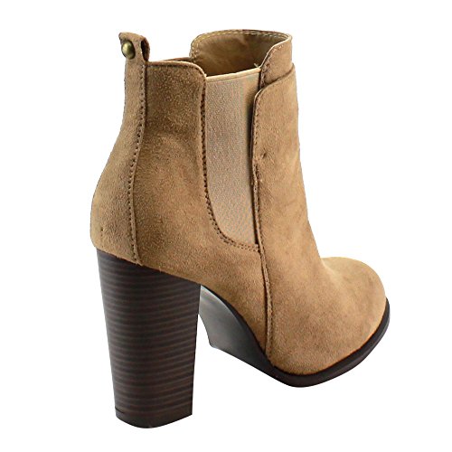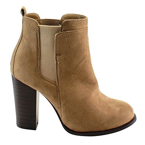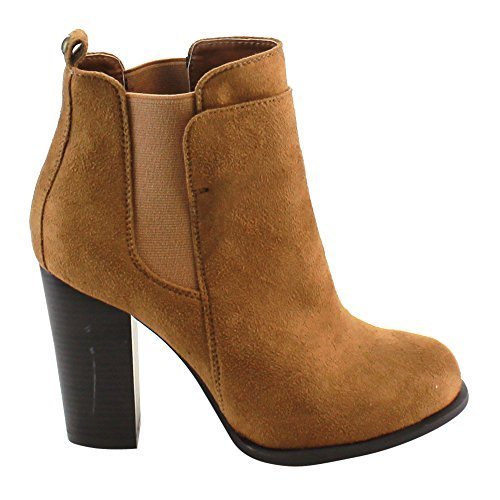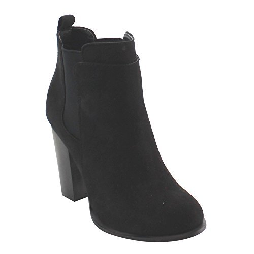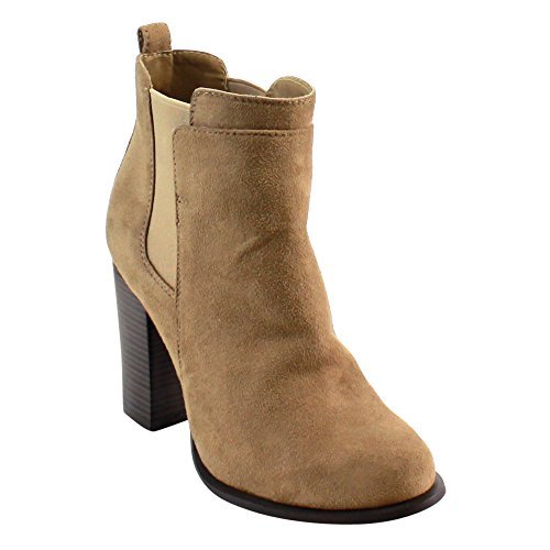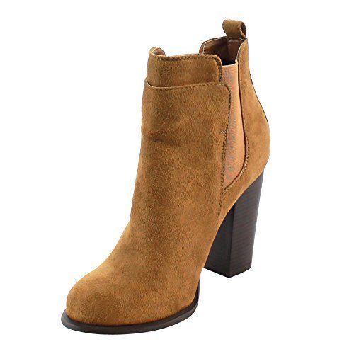 | NATURE BREEZE FD91 Women's Elastic Side Panel High Block Heel Ankle Bootie |
