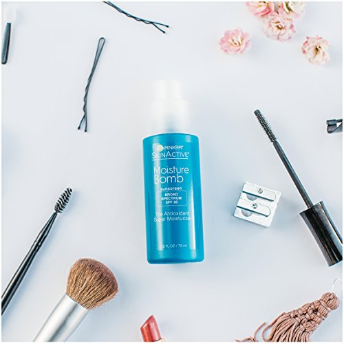 Garnier SkinActive Moisture Bomb Antioxidant Moisturizers with Hyaluronic Acid and Vitamin C and E. Discover the antioxidant super moisturizers that flood skin with long-lasting hydration. Now in a refreshing gel-cream moisturizer and SPF 30 face lotion. Formulated with Antioxidants Goji Berry & Pomegranate, these lightweight, antioxidant-packed formulas help strengthen and protect a healthy moisture barrier. The gel-cream face moisturizer has a sheer, water-light formula that floods skin with intense, weightless moisturize for softer, deeply hydrated skin. The SPF 30 moisturizing face lotion helps protect against daily aggressors, like harmful UV rays and provides lightweight daily moisture.