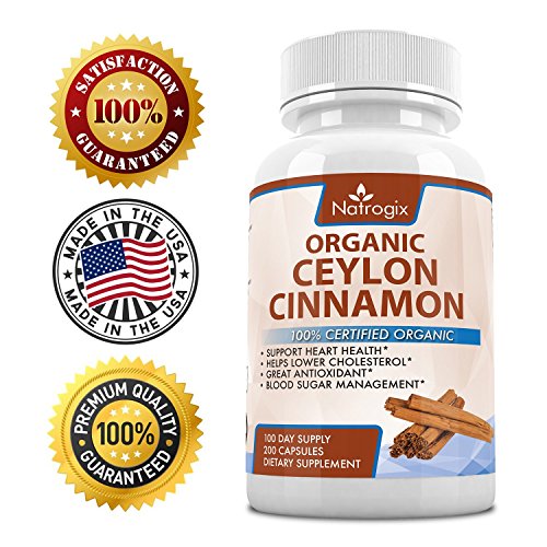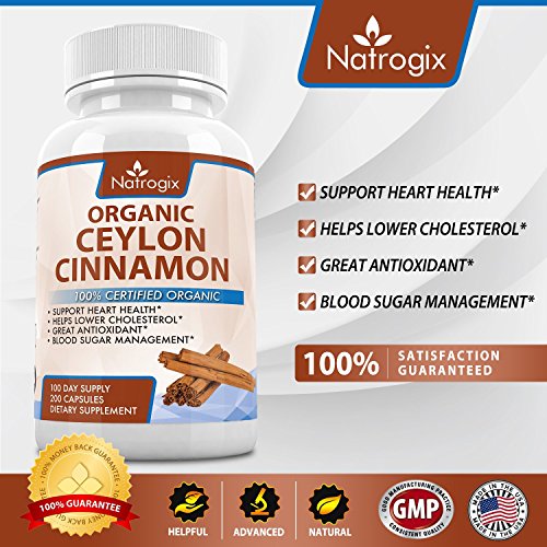 -. Title : Natrogix 100% Certified Organic Ceylon Cinnamon. Best Antioxidant Formula Supports Heart Health & Blood Glucose Levels, Helps Lower Cholesterol, Loss Weight Goals by Discouraging Insulin Spikes, Joint Health.