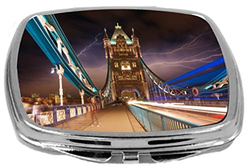 Rikki Knight Compact Mirror, Lightening Tower Bridge at Night London