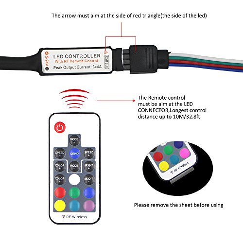 17 KEYS BETTER CONTROL SYSTEM:The latest led strip lights with 20 different dynamic modes 20 different colors static mode, and a common DEMO mode,5 level dynamic speed adjust,and 5 level brightness adjust,and 7 colors static quick adjustment keys,it flexible meet your expectations of adjusting the lights quickly,smoothly.The maximum control distance is up to 10M
