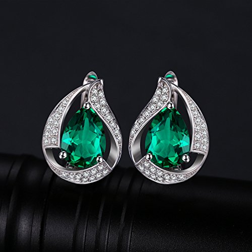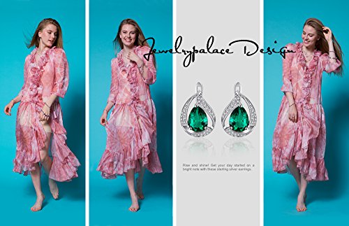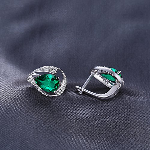 JewelryPalace Pear 3.7ct Nano Russian Simulated Emerald Hoop Earrings Solid 925 Sterling Silver