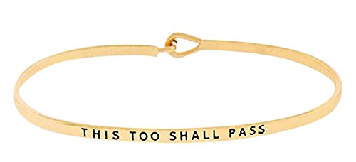 -. Feature : Bracelet measures 2.5" in diameter and .2" tall / Bracelet is engraved with "This Too Shall Pass" / Secure hook clasp - Comes packaged ready for gift giving / Great gift idea for mother, daughter, wife, girlfriend, best friend, sister / Suitable gift for birthday, graduation, Christmas, Easter, Valentine's Day, Mother's Day, graduation, parties, weddings and all other occasions