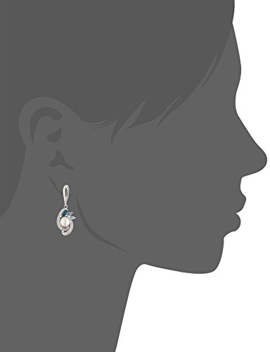 sterling silver drop earrings featuring freshwater cultured pearl and mixed blue topaz diamond