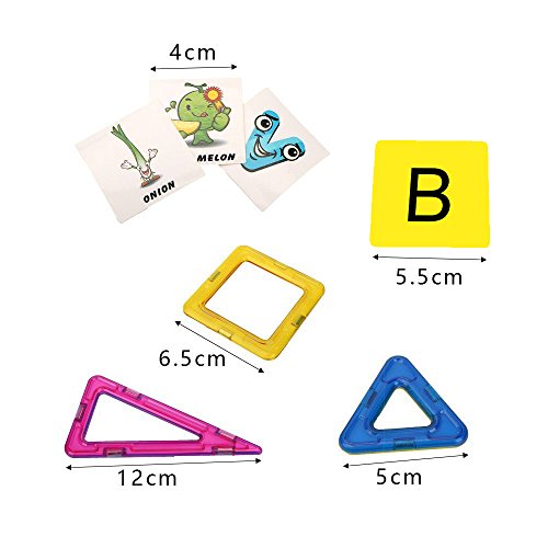 -. Feature : Spark Your Child's Imagination - All children aged 3 or up will enjoy the colorful world they can create with this set. The pieces are durable and safe so they can be used again and again / Travel Sized Magnetic Building Block Set - Including 18 plastic letter cards, 2 pairs of wheels, 12 squares, 12 equilateral triangles and 2 long triangles. Perfect to play on the go. And keep your child engaged during travel / Educational & Creative - A great creative toy that lets your child engage with their imagination. It's low-tech and creates very little noise. Your child can develop their creative side and motor skills through playing / Learn & Play - If you are looking for a way to connect with your child and have fun, this is a must-have gift. You will love the P.R.Ide you see in your child's face when they creates a new design. A toy that helps them learn really is the best of both worlds / Instruction Booklet and Storage Bag - The set includes with an idea book which will help to come up with new things to build. Easy to carry and store with our storage bag