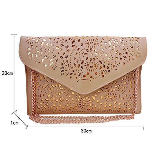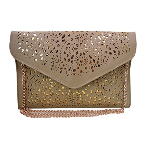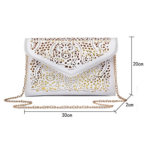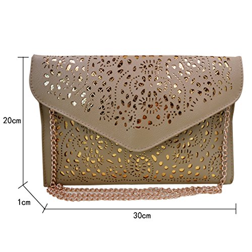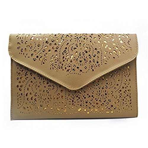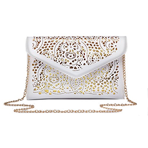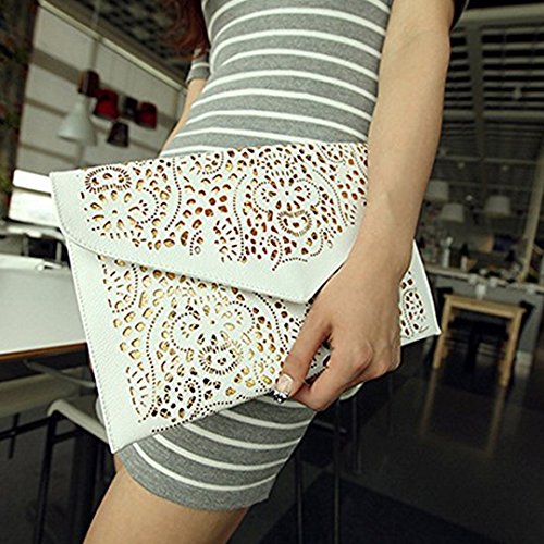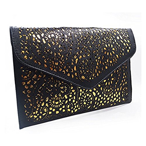 Product Description This is a perfect bag for going out from the park to the plane,ideal size for everyday use. This bag features a vintage hollow out flower design with classic envelop clutch shape,makes you more fashion,elegant and chic. It will make you very eye-catching. This Chic envelop clutch is the perfect way to express your style in a modern way. This bag is fashionable as well as functional. You can wear it and keep your personal belongings in it like I.D., keys, credit card, cash, cell phone, lip gloss,etc.