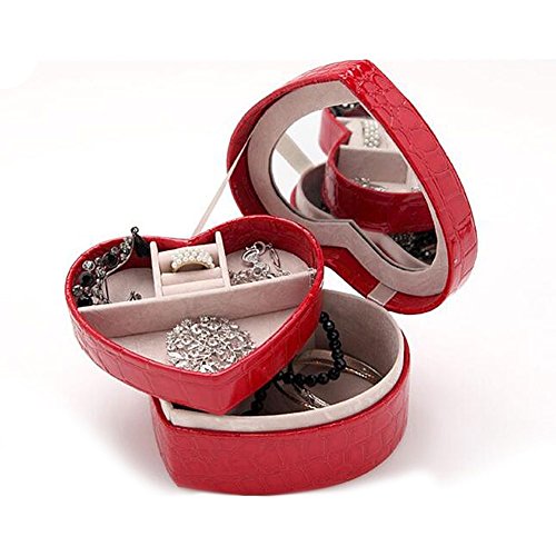 Mel Crouch Faux Leather Red Heart Travel Cases Jewelry Boxes Storage Makeup Organizer Display For Wome