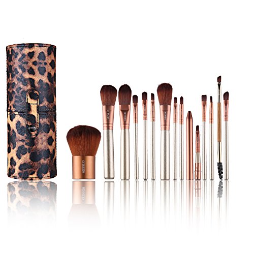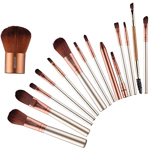 MEGGLIO 15Pcs Makeup Brush Set With Case Portable Wood Handle Makeup Tools Eye Face Foundation Contour Soft Brush (With Case)