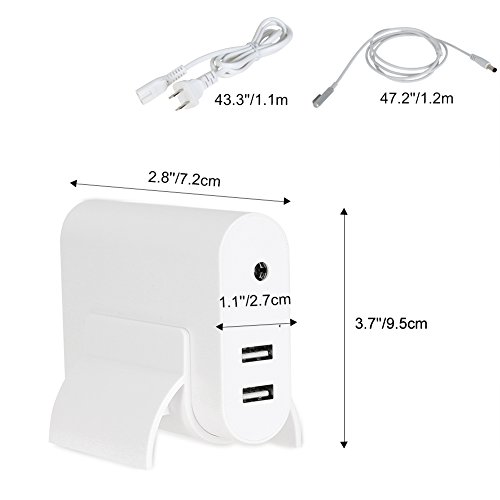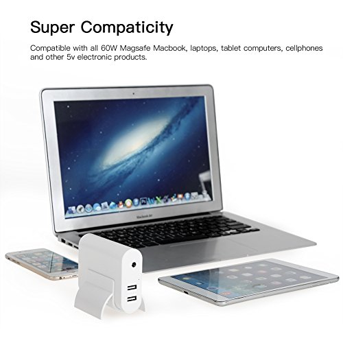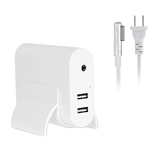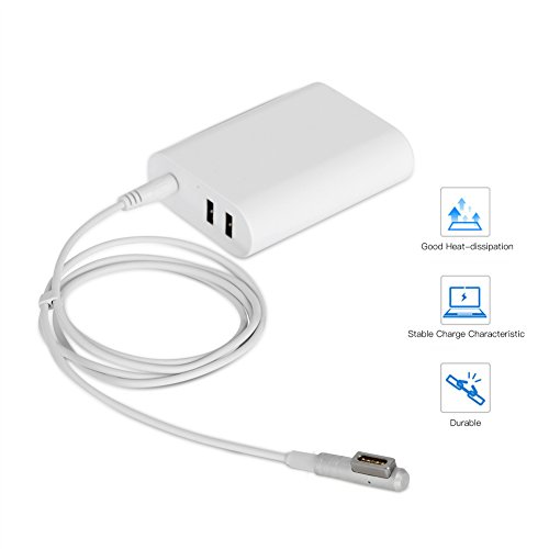ALLCACA MacBook Pro Charger 60W Magsafe 1 Power Adapter L-Tip Magsafe 1 Charger for MacBook, Mobile Phone and Tabelt PC, 2 USB Ports, White (MS1-L-Tip)