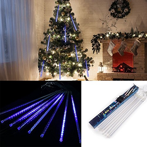 LED Meteor Shower Lights,kiwitatá Falling Rain Drop Icicle Snow Fall String Light,50cm 8 Tubes 240leds for Christmas Wedding Party Garden Decoration Blue