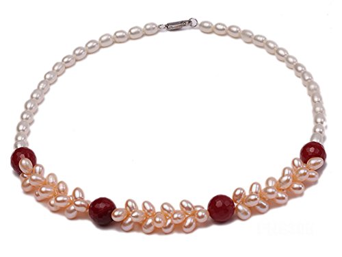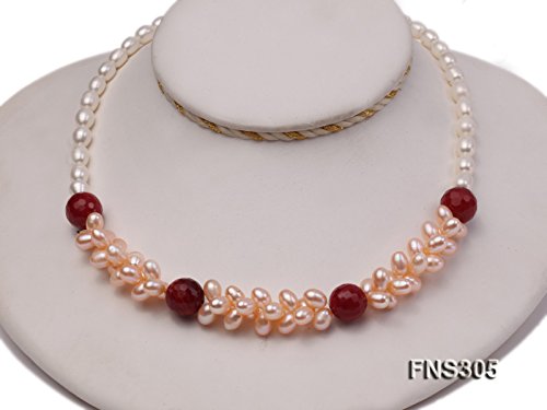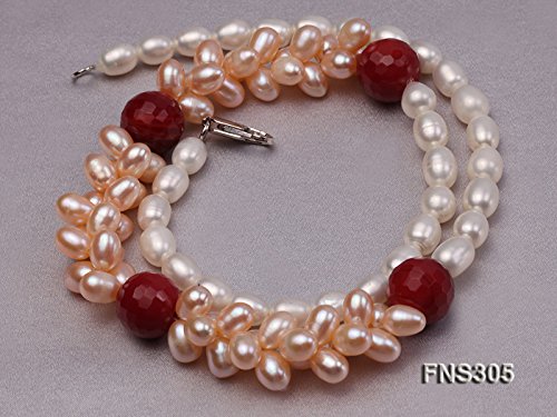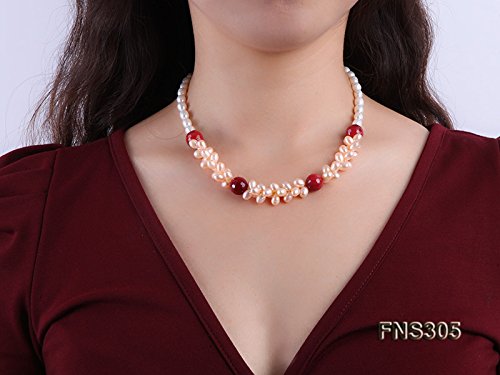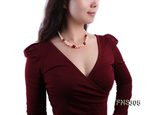 Description *This necklace is made up 7-8mm white freshwater cultured pearls, as well as a red stone bead as ornaments.