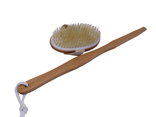 - Back and body brush with natural bristles and detachable head, brush has hand loop for no-slip grip, great for exfoliating and improves circulation