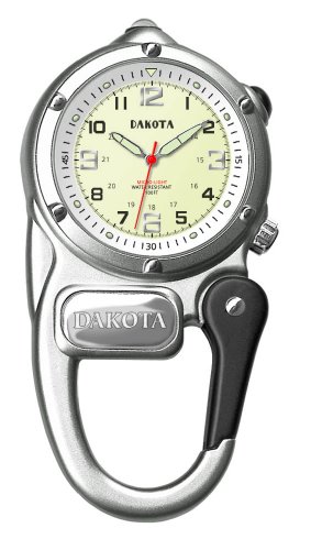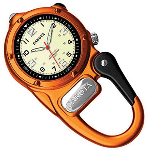 This handy clip-on watch features an ultra bright LED at its crown that's perfect for finding keyholes and watching your step at night. Clip it on your pack or hunting vest for a reliable, weather-resistant timepiece and light. The watch features luminescent hands and hour markers, integrated carabiner for clip-and-go convenience, durable alloy case. dependable Miyota movement, military dial, and it's water-resistant to 100 ft.Feature
