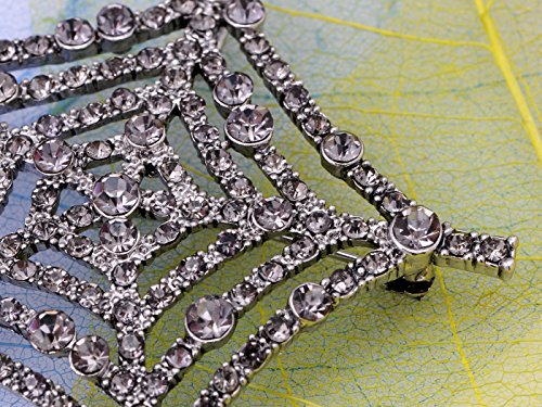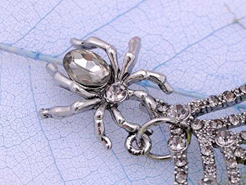 UNIQUE DESIGN - Brooch featuring Halloween creepy spider & web design with grey crystal rhinestones and silver tone alloy metal.