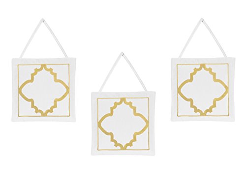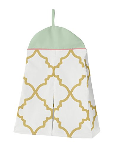 -. Feature : 11 Piece Set Includes: (1)Crib Blanket, (3)Wall Hangings, (1)Fitted Sheet, (1)Skirt, (2)Window Valances, (1)Diaper Stacker, (1)Toy Bag and (1)Throw Pillow / **Sweet Jojo Designs also offers matching bumper sold separately and a 9 piece set that includes the bumper / This set combines a striking metallic gold and white trellis P.R.Int and solid mint and coral fabrics. / This set is made of brushed microfiber and is machine washable / This design has matching accessories such as window treatments, hampers, shower curtains, memory photo boards, body pillow cases and decorative pillows.