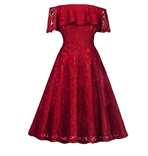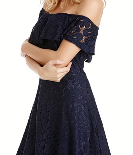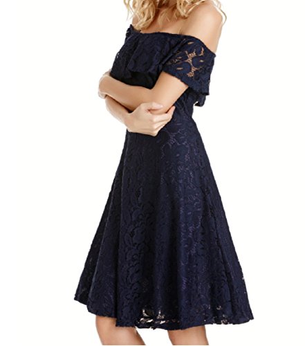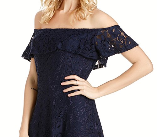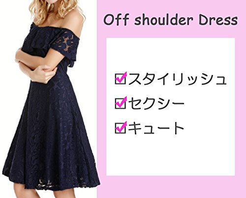 -. Feature : スタイリッシュ 且つ セクシーな、フリル付 オフショルダードレス!膝上丈 フレアースカート が、若々しく、可愛いデザインです。総刺繍レースになっており、エレガントさも持ち合わせている オシャレなドレス!柔らかい素材でフワフワと軽やかに見え、Aライン シルエット が綺麗です。 / オフショルダーは、女性ならではのデコルテをキレイに見せてくれます。伸縮性が有り、ストンと落ちる心配はありません。ジッパーが後ろに付いています。可愛らしいデザインなので、カジュアルなパーティーにもおすすめです。華やかな アクセサリー、ハイヒール、バッグなどと一緒に、パーティーコーデを楽しめます。結婚式二次会などにも如何でしょうか。 / 【Mサイズ】バスト85cm / ウエスト73cm / 着丈82cm / 【Lサイズ】バスト95cm / ウエスト78cm / 着丈83cm / 【XLサイズ】バスト103cm / ウエスト86cm / 着丈84cm ※手動測定により1~3程の誤差は予めご了承ください。【カラー】ネイビー / 黒 ブラック / ワインレッド