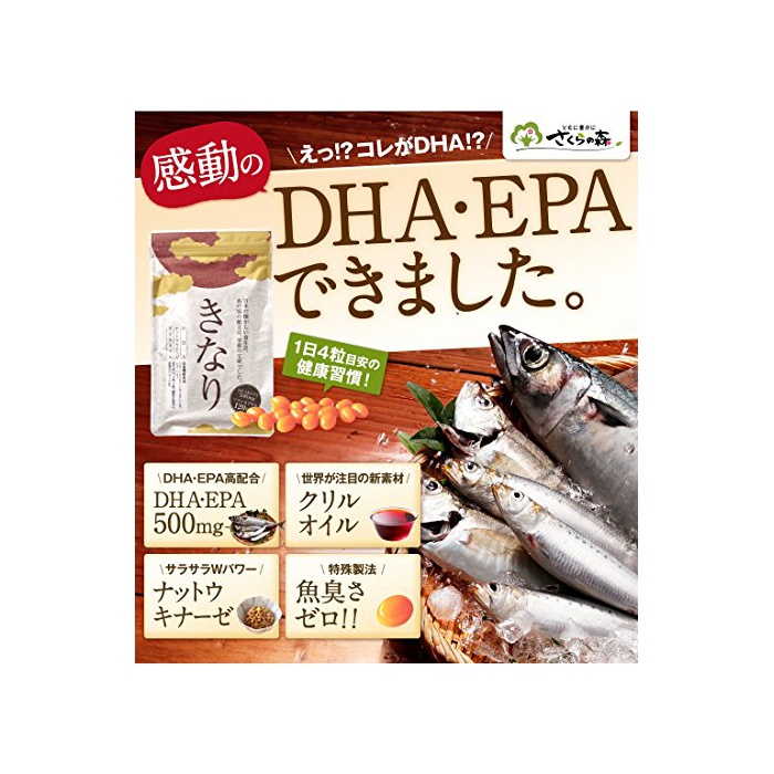 DHA EPA를 고배합……4알에 500mg / 세계가 주목하는 신소재……《구리루오이루》배합 / 보송보송W파워……너트 우끼(찌)《나제》배합 / 특수 제법……어쾨쾨함 제로