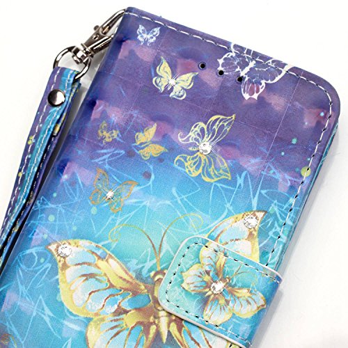 Galaxy Core Prime Case,ikasus Shiny Glitter Diamond Colorful Art Painting PU Leather Flip Wallet Pouch Stand Credit Card ID Holders Case Cover for Samsung Galaxy Core Prime G360F,Blue Yellow Butterfly