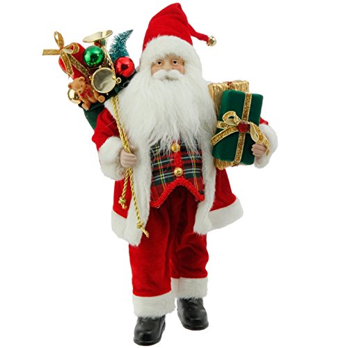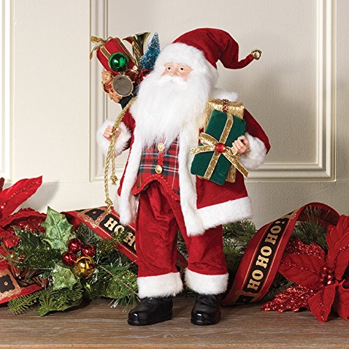 RAZ - 18" Santa Figurine with Plaid Vest and Bag of Presents