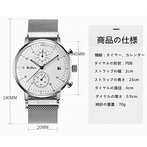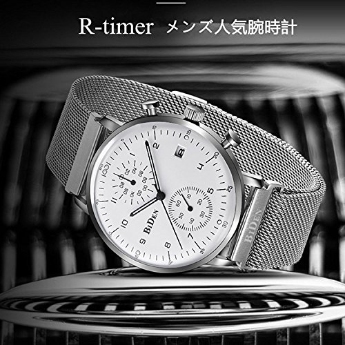 -. Title : R-timer(アールタイマー)腕時計 メンズ おしゃれ アナログ 超薄型 メンズ ビジネス ウォッチ メッシュ バンド 腕時計 日付表示