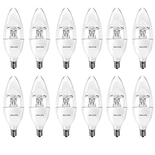 Philips 461863 40W Equivalent Soft White Dimmable B11 LED Light Bulb, Candelabra Base, 12 Pack