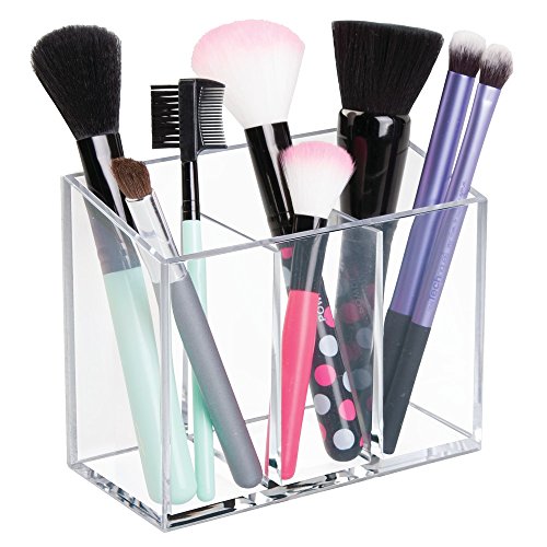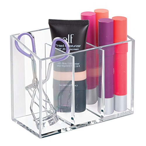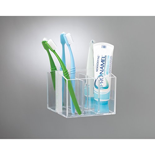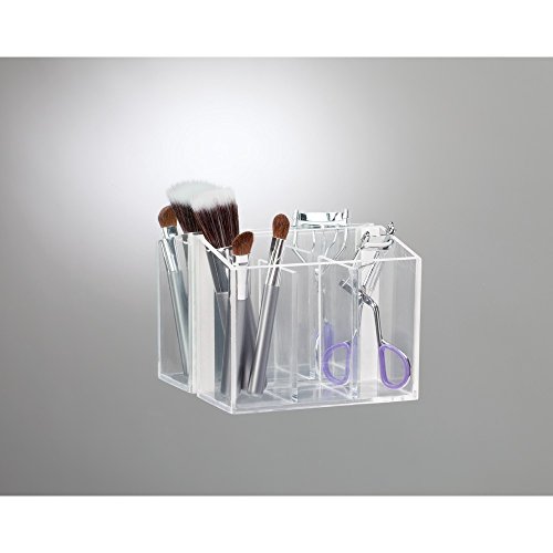 InterDesign AFFIXX, Peel and Stick Strong Self-Adhesive Vanity Cosmetic Organizer, Storage for Hair Care, Jewelry, Bath, Q-Tip Holder, Makeup Organization - 3 Compartment, Clear