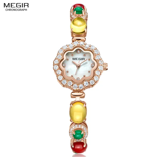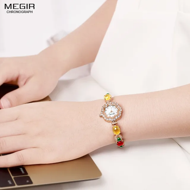 | [해외] Megir 새로운 패션 여성 팔찌 시계 럭셔리 크리스탈 석영 여성 시계 여성 연인 커플 팔찌 여성 시계 Relogio |