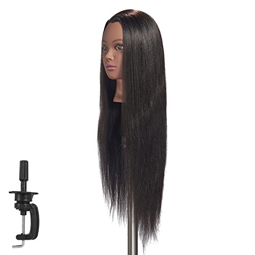 Hairginkgo 26-28" Cosmetology Mannequin Head Hair Styling Training Head Synthetic Fiber Manikin Head Doll Head with Clamp (91806BY0220)