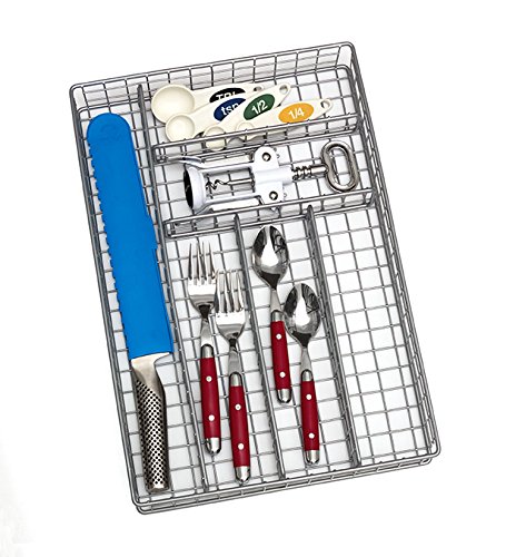 Lipper International 8168 Flatware Organizer, 6 Compartments, Metal Wire, 10-3/4" x 15-3/4" x 2-1/8", Silver