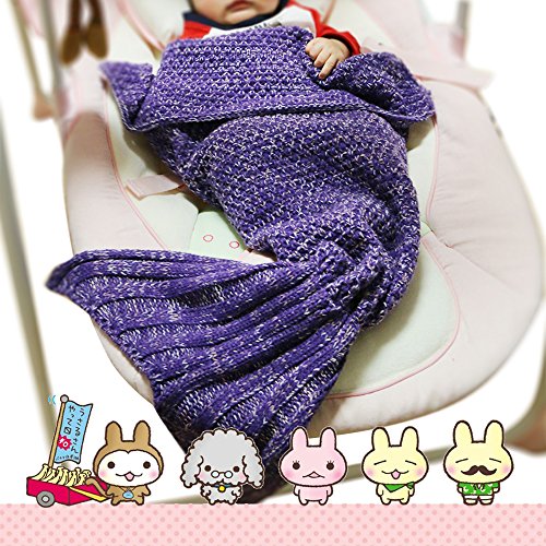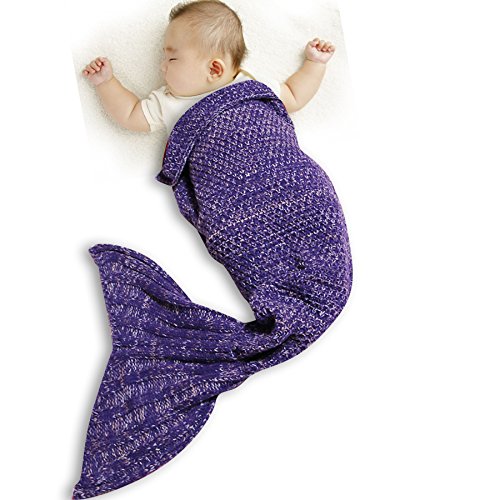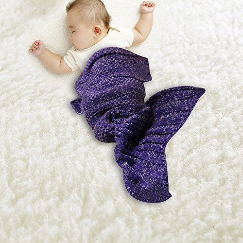 Funwill Mermaid Tail Blanket Knit Crochet for Baby Swaddling Sleeping Bag , for Baby Photo Photography (Purple) 35.4inx19.6in