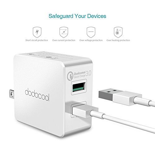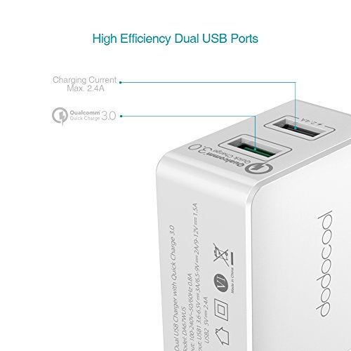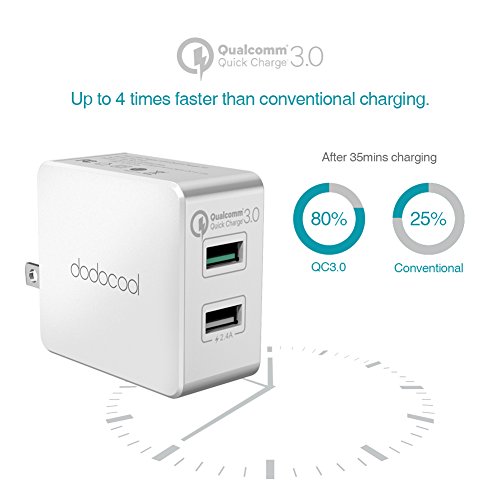 dodocool USB Wall Charger with Quick Charge 3.0, 30W 2 USB Outputs, Foldable Plug for iPhone 7/7Plus, Samsung Galaxy S7/S6 Edge, Google Pixel and More