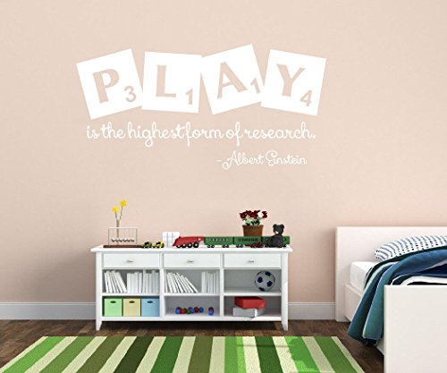 -. Title : Wall Decal Decor Playroom Decor Play is the Highest Form of Research - Albert Einstein Quote Playroom Decal Childrens Kids Wall Decal Sticker(White, 11"h x22"w)