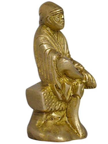 Zap Impex Hindu Religion God Small Handmade Sai Baba Brass Sculpture For Car`office Desk , Solid Brass Sculpture/artifact of hindu religious, Vintage Decorative, Valuable Collection, Home Decor