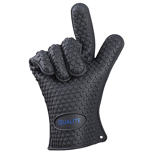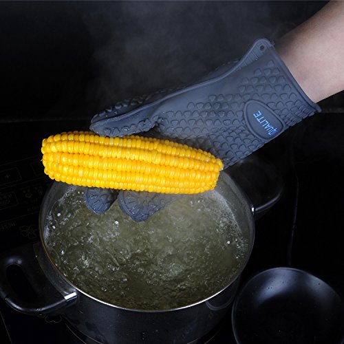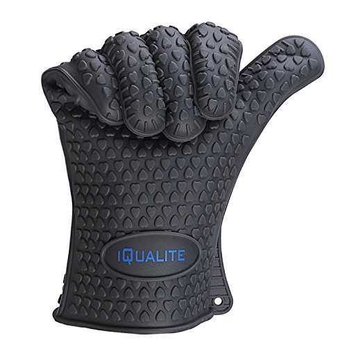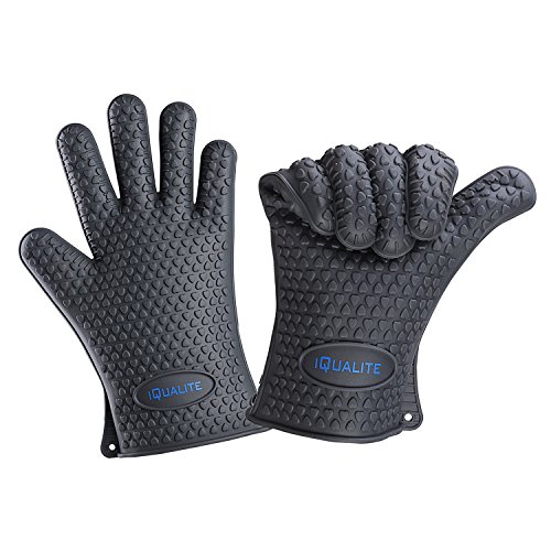 Silicone Oven Mitts - IQUALITE BBQ Grill Heat Resistant Kitchen Oven Glove Potholder - 1 Pair (Grey)