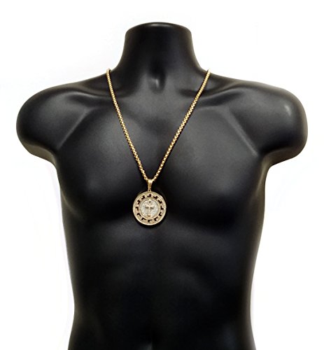 -. Feature : Pendant Dimensions: 1.87 x 1.87 inches / Pendant Material: 18k Gold Plated 316L Grade Stainless Steel / Chain Length: 30 inches / Chain Material: 18k Gold Plated 316L Grade Stainless Steel