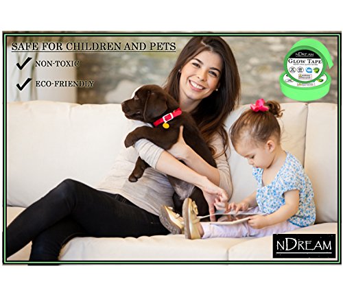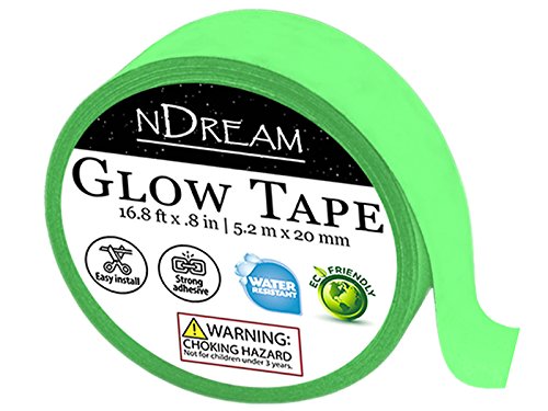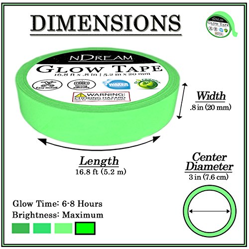 Glow in the Dark Tape by nDream – 1 Roll - 16.8 ft x .8 in, Bright Neon Green Luminous Party Stickers, Glow In Dark Paper or Paint Alternative, Waterproof, Sticks to Shirts and Fabrics